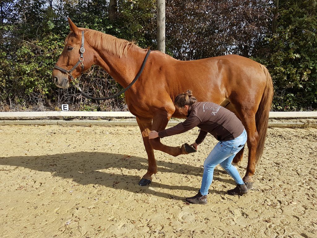 Noch ein paar Worte zu “der hat einmal am Bein gezogen und war wieder weg”: bei der Arbeit mit langen Hebeln wird nicht nur das blockierte Gelenk im Rücken behandelt, sondern auch noch alle anderen die zwischen Huf und Rücken liegen. Dadurch können Bänder, Gelenkkapseln und Muskeln überdehnt werden; Zerrungen und Entzündungen können folgen. Reißt man gewaltsam am Bein, kann das zudem die Gefäße des Lymphsystems, des Blutsystems und auch des Nervensystems schaden.
