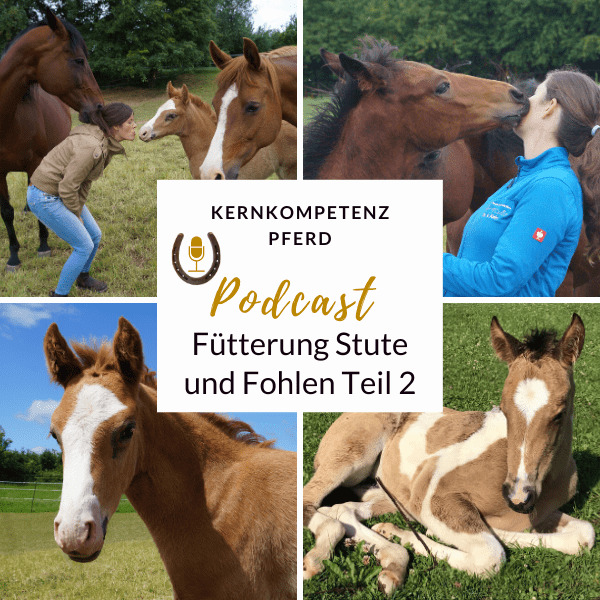 Der 2. Teil dieser Episode bespricht die Fohlenfütterung. Zuerst die Bedeutung der Biestmilch und die Entwicklung bis zum 3. Lebensmonat. Ab dem 3. Lebensmonat reicht dann die Muttermilch alleine nicht mehr aus, eine gezielte Zufütterung sollte begonnen werden (s. Beispielsrationen Fohlen 3. – 6. Monat).