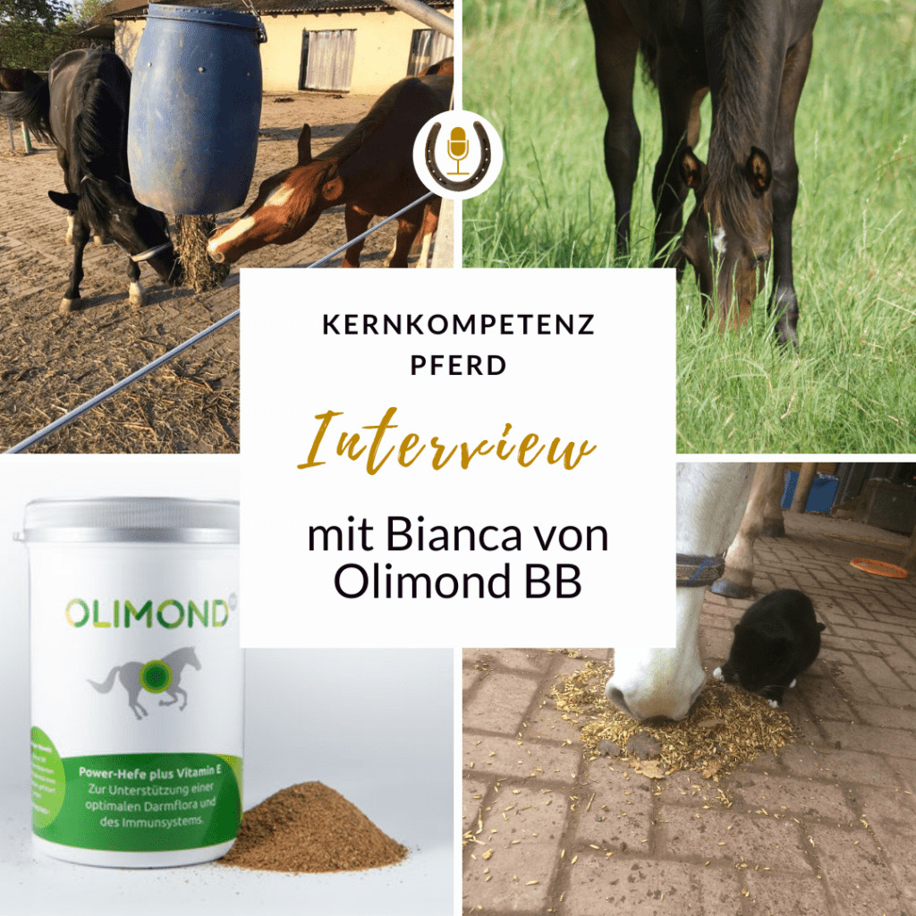 In diesem Zusammenhang habe ich ein Interview mit Bianca geführt über das Produkt Olimond BB. Olimond BB ist das Produkt einer speziellen Fermentation und schonenden Trocknung der Hefe Saccharomyces cerevisiae und ist somit eine inaktivierte Hefe, die keine Gärungsprozesse im Magen-Darmtrakt des Pferdes verursacht. Die wichtigen Hefefaktoren, B‑Vitamine und die Fermentationsprodukte bleiben erhalten.