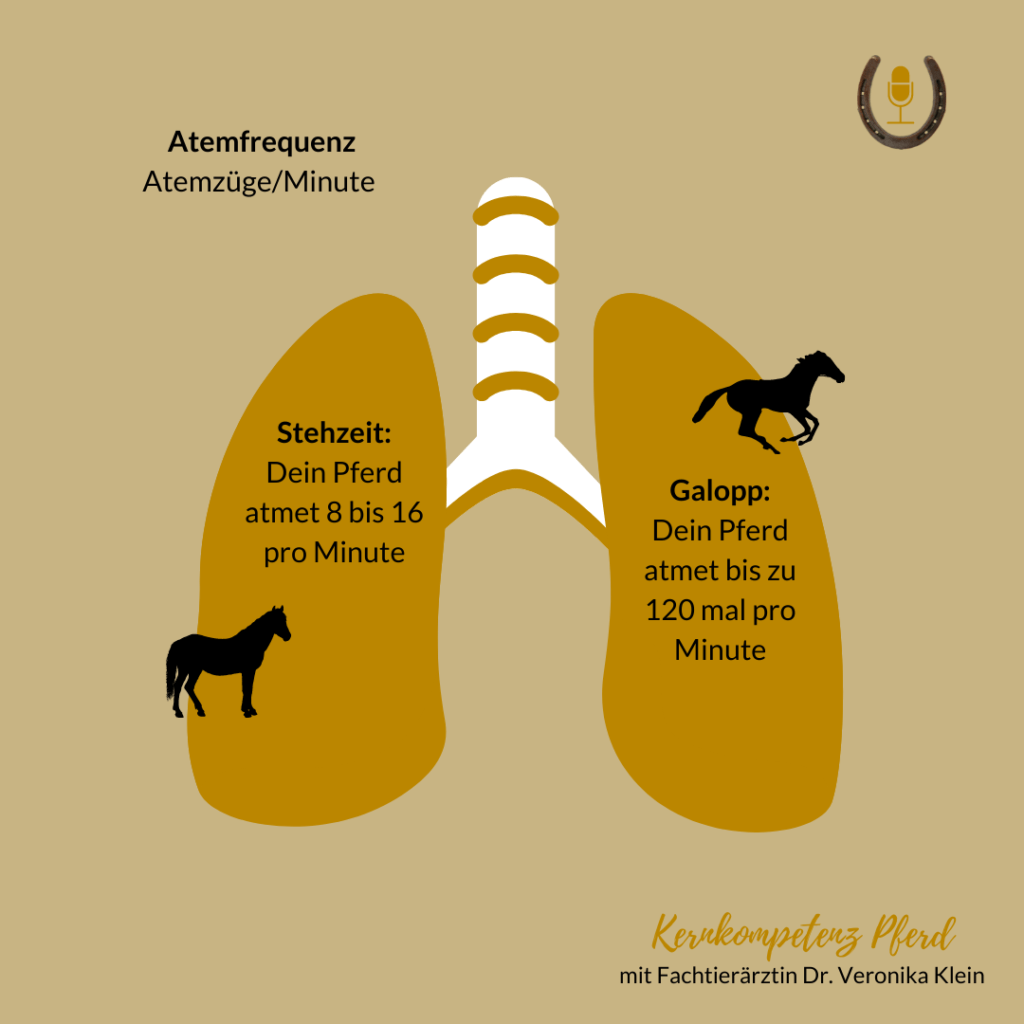 Die Atemfrequenz ist im Ruhezustand über 30 Züge/Minute → dein Pferd ist nicht trainierbar. Du solltest mit Übungen im Stand beginnen und weitere Maßnahmen mit dem Tierarzt absprechen.Die Atemfrequenz ist im Ruhezustand unter 30 Zügen/Minute → achte beim Lungensport darauf, dass die Atemfrequenz unter 60 bleibt und kontrolliere die Regenerationszeit.Werte bleiben im Normbereich → dann empfiehlt es sich, Galopptraining für die Lunge durchzuführen bei einer Belastungsintensität 60 – 70% der maximalen Herzfrequenz als Ziel.Grundsätzlich gilt: Die Atemfrequenz darf niemals gleich oder höher als die Pulsfrequenz sein! Dann muss das Training sofort gestoppt werden und die Intensität war zu hoch.
